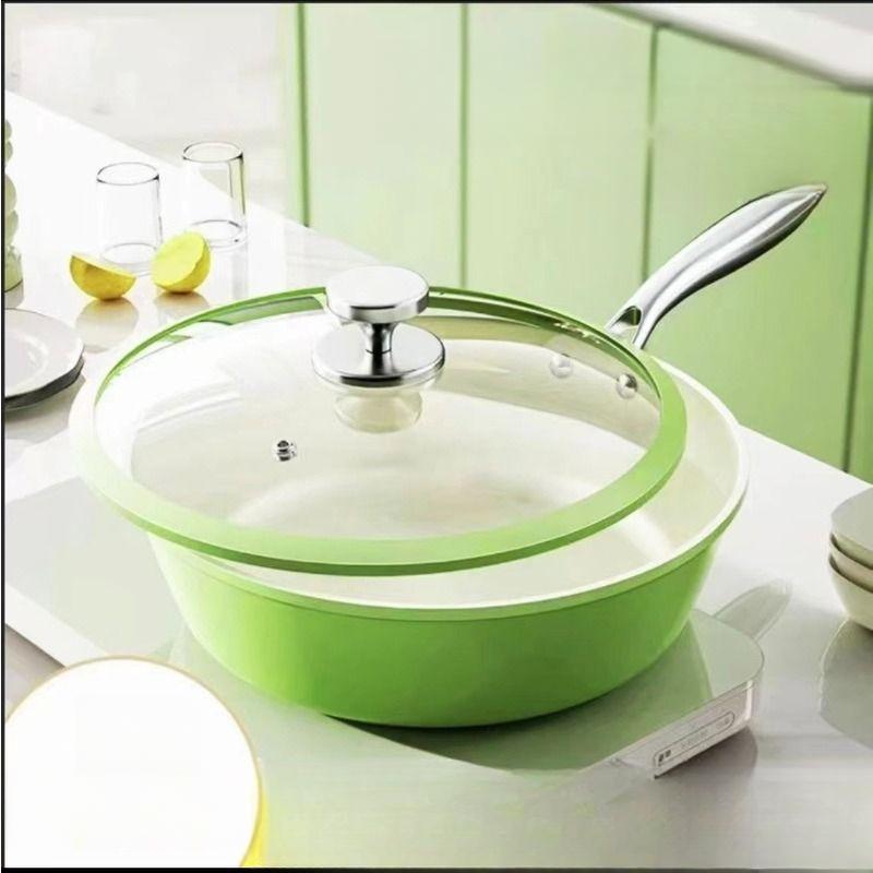 Кастрюля с антипригарным покрытием для домашнего использования, многофункциональная, не выделяющая масляного пара, съемная, моющаяся, ленивая сковорода для готовки 28cm зелёный