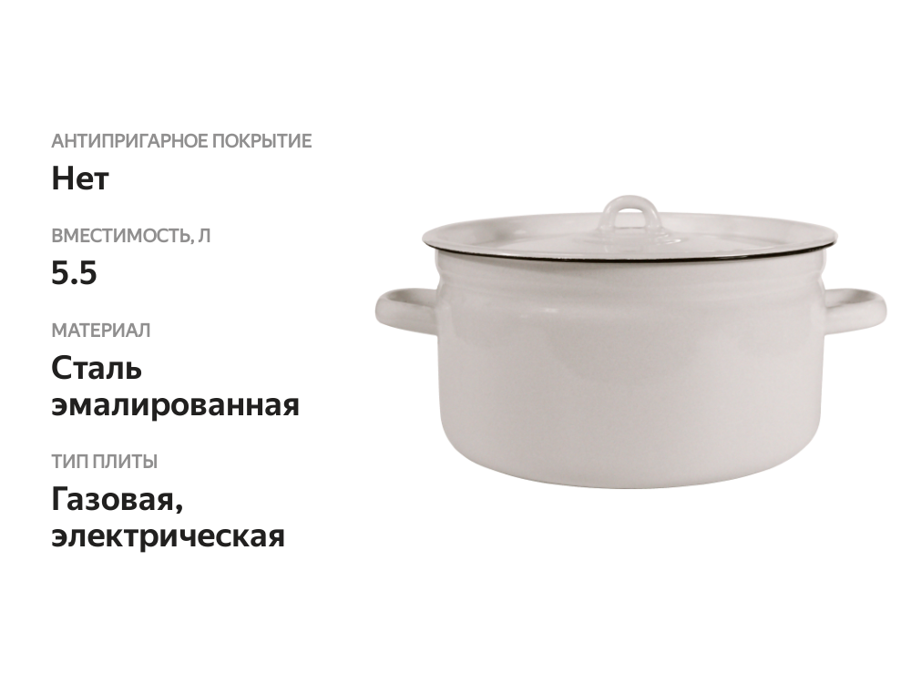 Кастрюля с крышкой ЛЫСЬВЕНСКИЕ ЭМАЛИ Жемчужная, эмалированная сталь 5.5 л