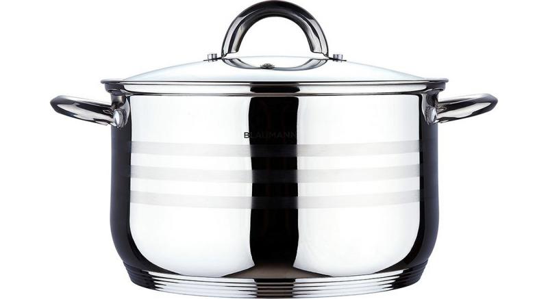 Кастрюля Blaumann Gourmet из пищевой нержавеющей стали 18/10. Объем 1.8л, диаметр 16см, высота 10.5см. Не окисляется, не меняет вкус и запах еды. Дно 5-ти слойное, индукционное, капсульного типа (0.3мм алюминий + 1.8мм сталь + 0.3мм алюминий + капсула из нержавеющей стали) с высокими термоаккумулирующими и энергосберегающими свойствами. Посуда нагревается быстро и равномерно, что предотвращает точки перегрева и пища не пригорает. Внешняя поверхность - зеркальная полировка с сатиновыми полосами. На внутренней стенке мерная шкала для точной дозировки жидких продуктов. Подходит для использования на всех типах плит, включая индукционные и стеклокерамические. Укомплектована жаропрочной стеклянной крышкой с отверстием для пароотвода и металлическим ободком, который защищает от сколов. Ручки металлические на клепочном креплении. Цвет: матовый металлик. Можно мыть в посудомоечной машине.