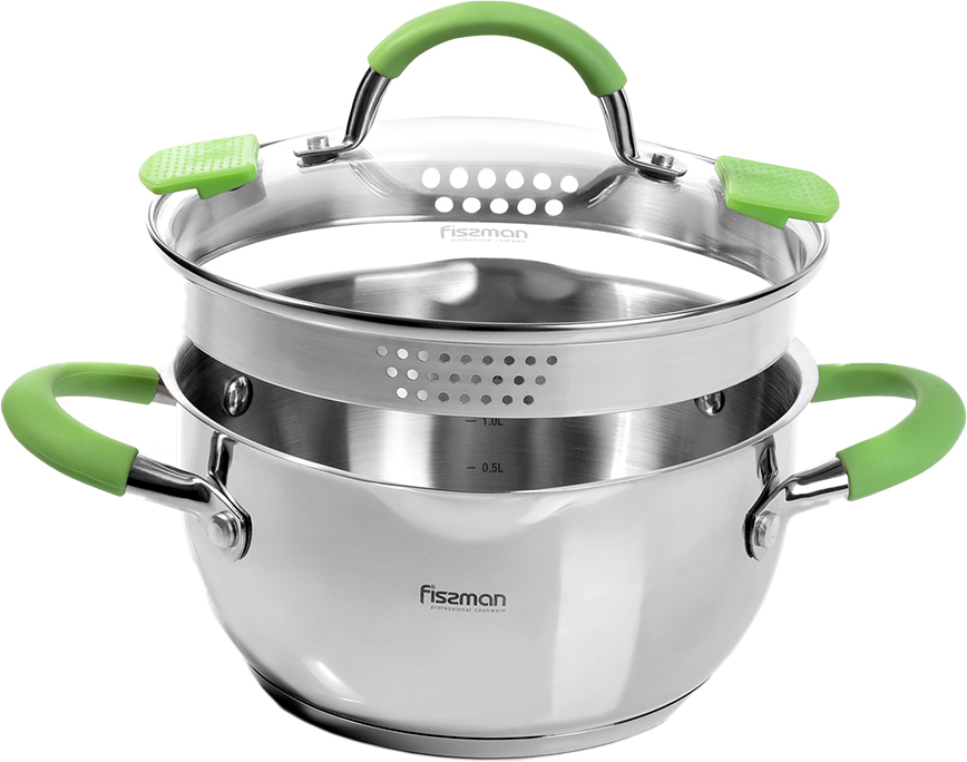 Fissman производит надежную посуду для приготовления пищи, выполненную из нержавеющей стали или алюминия. Датский производитель – это залог высокого качества изделий: принятые на территории ЕС стандарты не позволяют предприятию ни на шаг отступить от действующих норм, иначе последуют жесточайшие санкции. Именно по этой причине изделия Fissman являются одними из самых безопасных. Спрос на посуду компании обусловлен и постоянной работой дизайнеров над новыми линейками продукции: сегодня можно найти кастрюли или сковороды, которые понравятся любому покупателю и в этом заслуга креативной группы, разрабатывающей данные модели. Посуда Fissman – это современный дизайн и удобство использования. При производстве используются только самые высококачественные материалы: алюминий, чугун, пищевой силикон, нержавеющая сталь, бамбуковое волокно.Кастрюля Fissman Charlotte 2 л.Многослойное капсульное дно обеспечивает равномерный нагрев и распределение тепла благодаря алюминиевой прослойке, раскрывая вкусовые качества блюда и сохраняя все полезные свойства продуктов, а индукционный слой делает посуду универсальной для всех типов плит.Диаметр по верху: 18 см.Диаметр дна: 14.5 см.Ширина с учетом ручек: 28 см.Высота: 9 см.Высота с крышкой: 13.5 см.