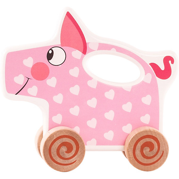Каталка Деревяшки "Поросёнок Хрю, Бежевый/розовый, Каталка Деревяшки "Поросёнок Хрю"