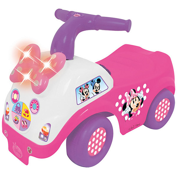 Такие каталки намного легче чем трёхколёсные велосипеды, поэтому именно с них лучше начинать первое знакомство крохи с транспортными средствами. Малышам не надо осваивать сложные навыки вращения педалей, а достаточно лишь отталкиваться ногами, чтобы изделие развивало скорость и ехало по дорожкам. А яркий дизайн каталки несменное оценят по достоинству юные поклонницы диснеевских мультфильмов о Мини Маус, ведь именно ее изображениями украшен корпус изделия.
