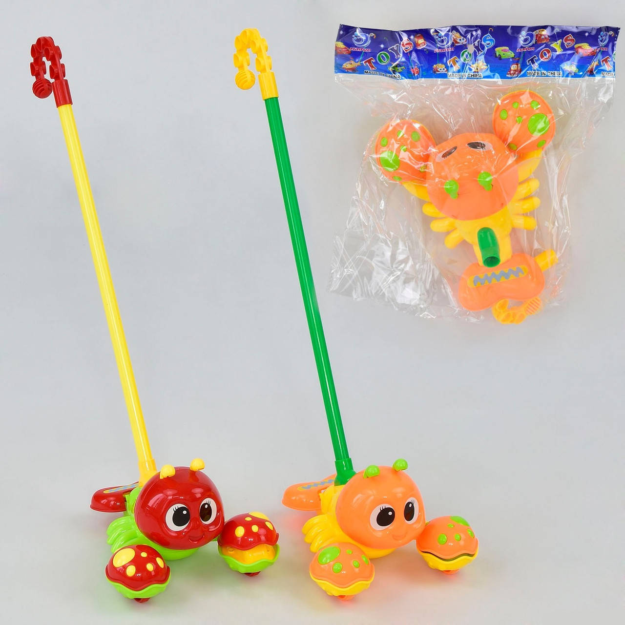 Каталка с ручкой детская 0350 "Крабик" на палочке, с погремушкой