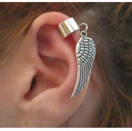 Кафа кліп (без проколу) сріблястого кольору з підвіскою крило янгола