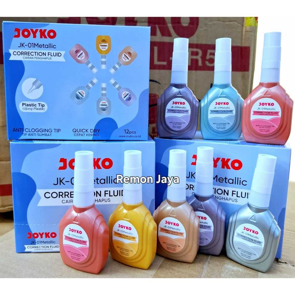 ( 12 Pcs) Tipe-X Tipex Tip-Ex Cair Putih JOYKO JK-01 Metalic /Metalik White Correction Fluid Ujung Tip Besi Metal Anti MacetCO