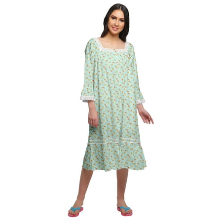 Moomaya WoMen s Flared Nightdress Long Sleeve Cotton Button Placket Nightwear
