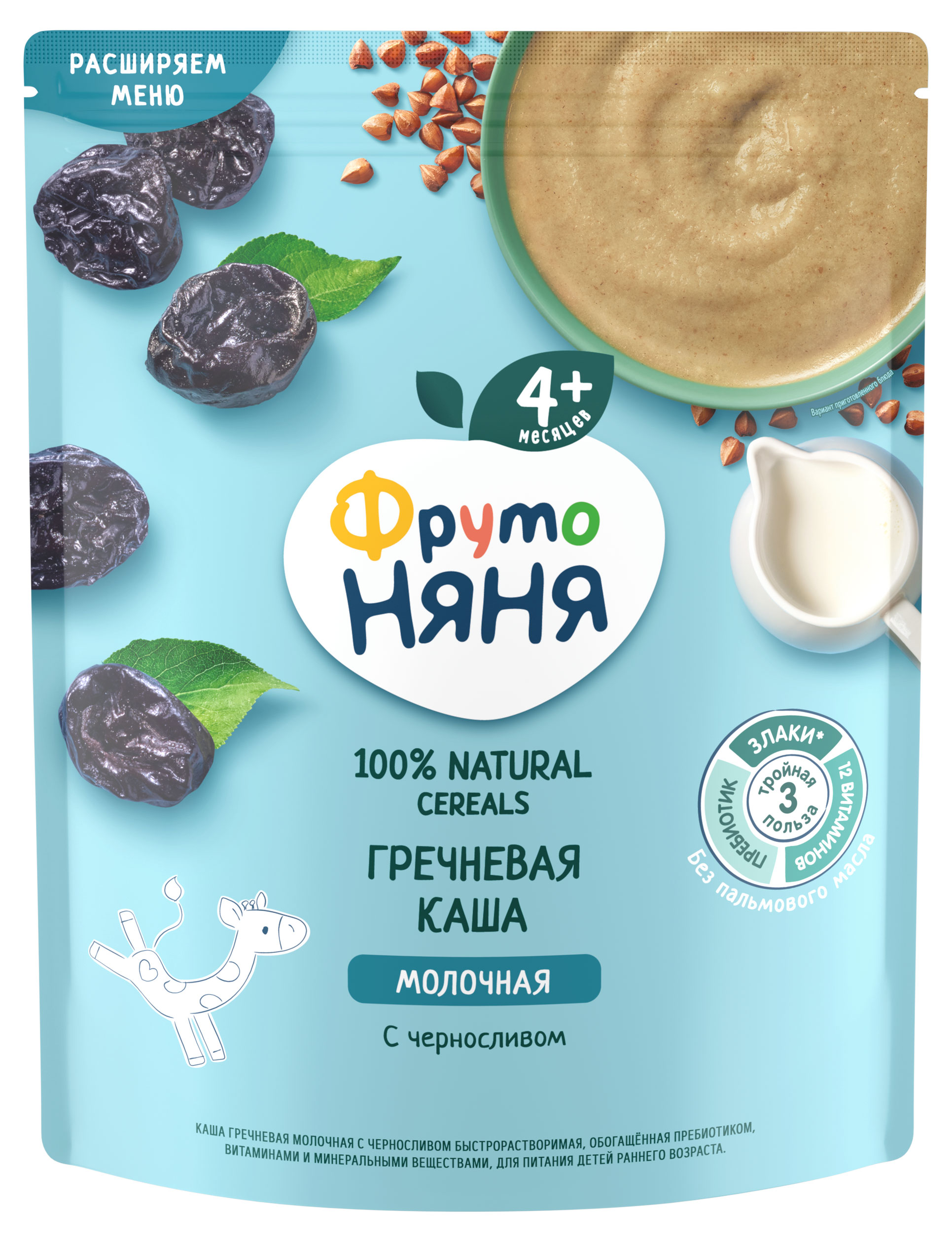 Сухая молочная гречневая каша ФрутоНяня с черносливом отлично подходит для первого прикорма детей от 4 месяцев. Ведь гречка гипоаллергенный продукт, который идеально дополнит рацион малышей раннего возраста. Гречневая каша ФрутоНяня очень вкусная и полезная, ведь у нее натуральный состав без красителей, консервантов и ГМО. Она дополнительно обогащена целым комплексом витаминов и минеральных веществ, чтобы ваш малыш рос здоровым и энергичным, а также пребиотиком, улучшающим пищеварение.