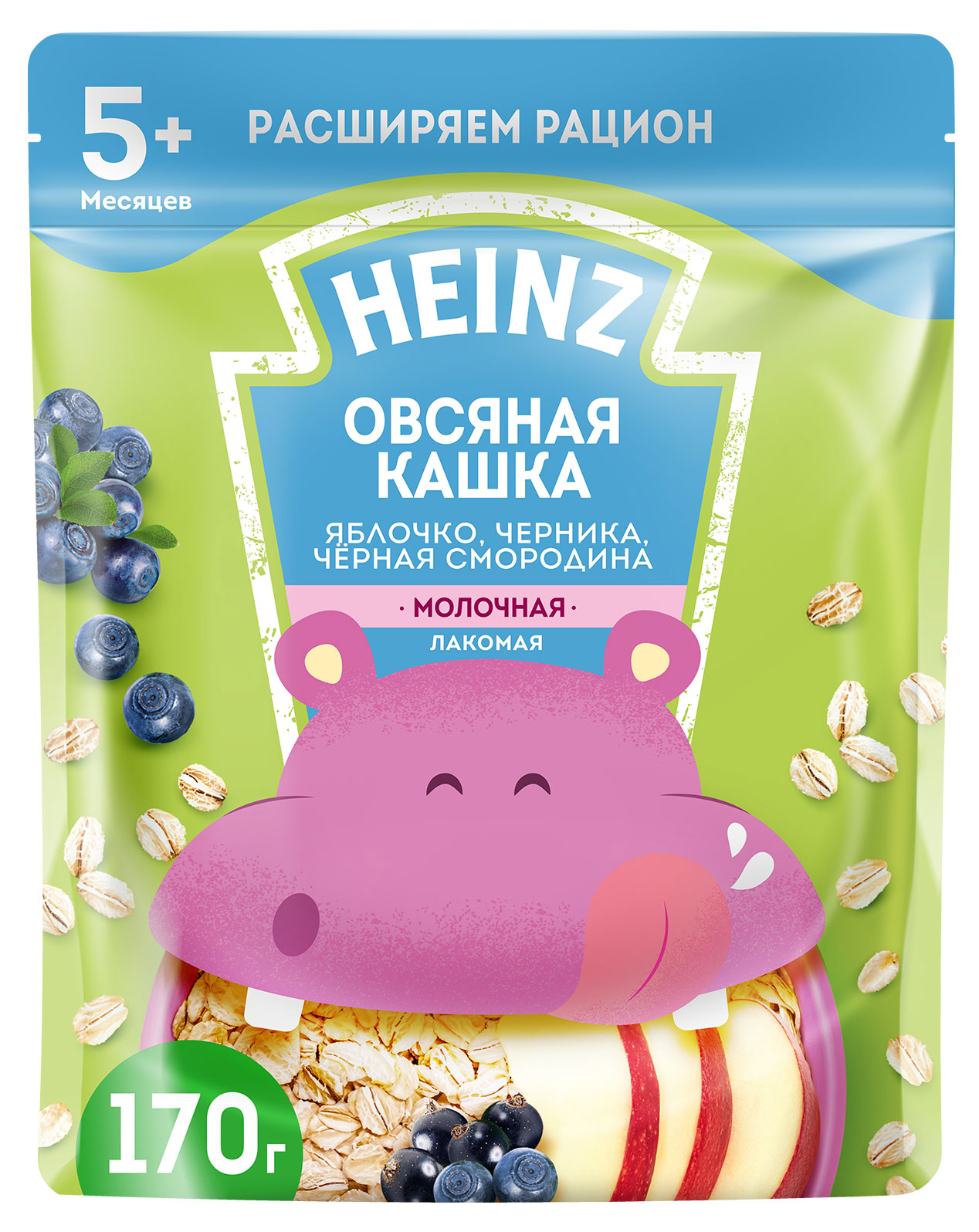 Каша молочная Heinz овсяная яблоко-черника-черная смородина с 5 мес., 170 г
