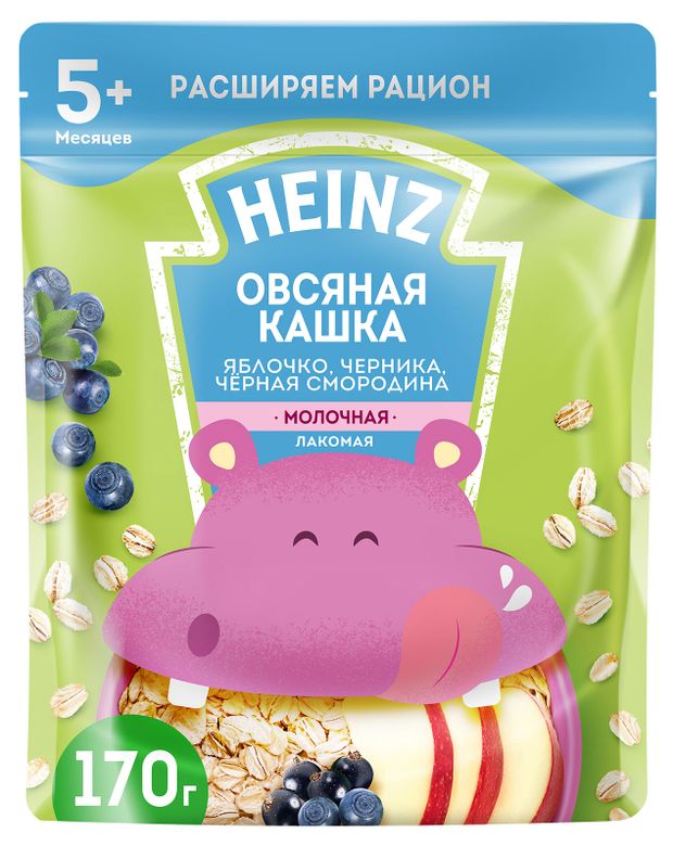 Каша овсяная молочная Heinz Лакомая Яблоко, черника, черная смородина, с 5 месяцев