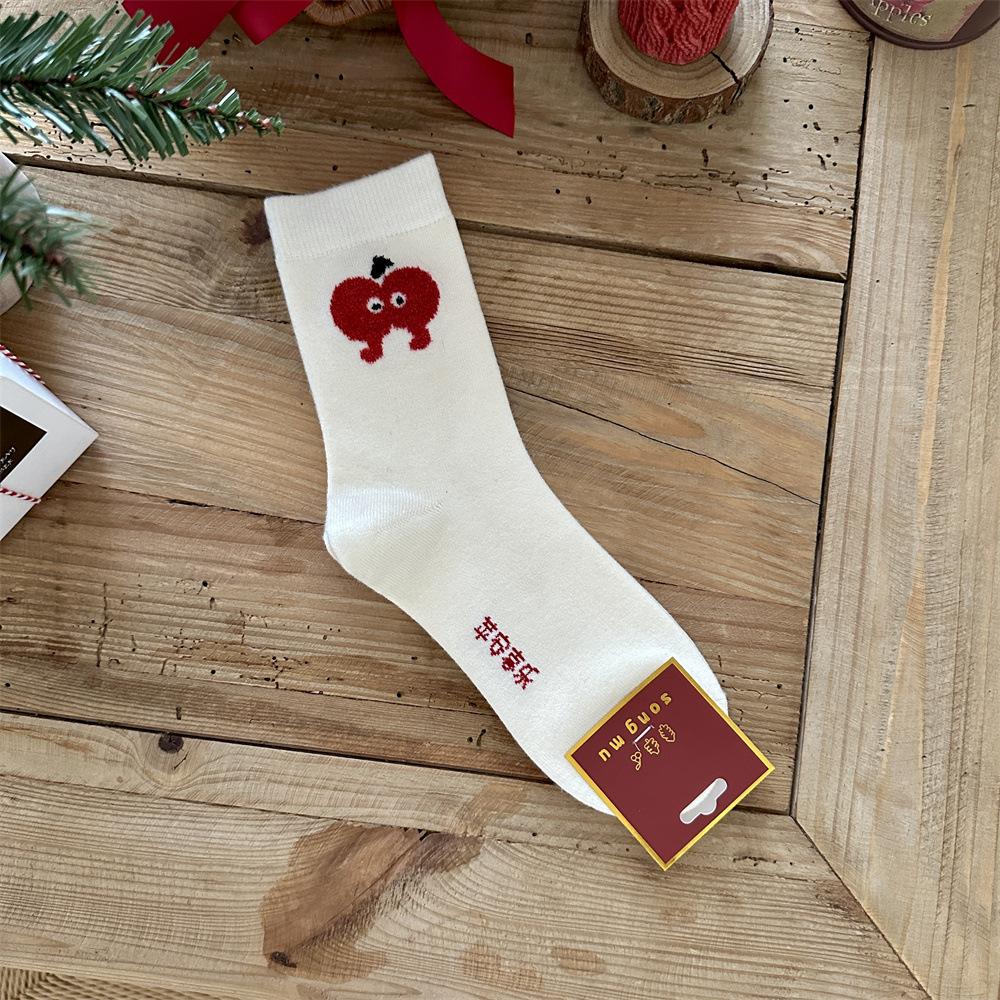 Кашемировые носки женские натальные годовые большие красные новогодние носки утолщенные теплые женские носки-трубы с украшениями в виде шариков среднего размера One Size