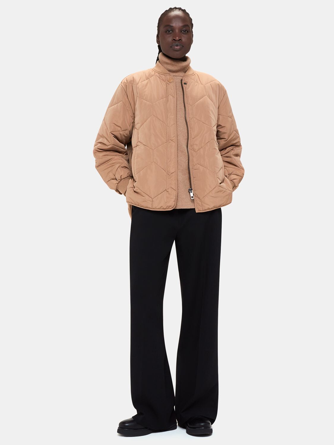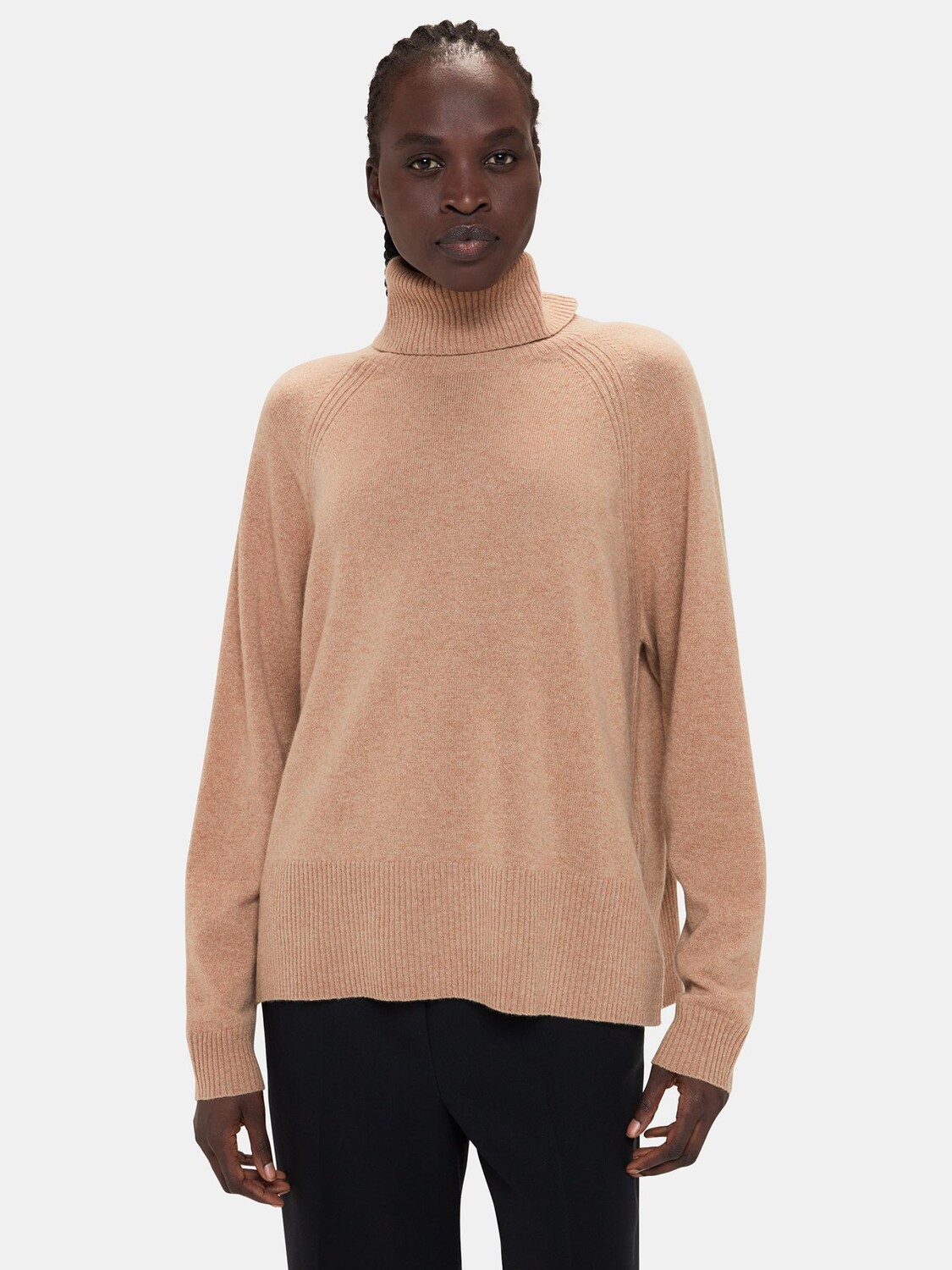 Кашемировый джемпер с рукавами реглан и воротником-стойкой Whistles, кэмел