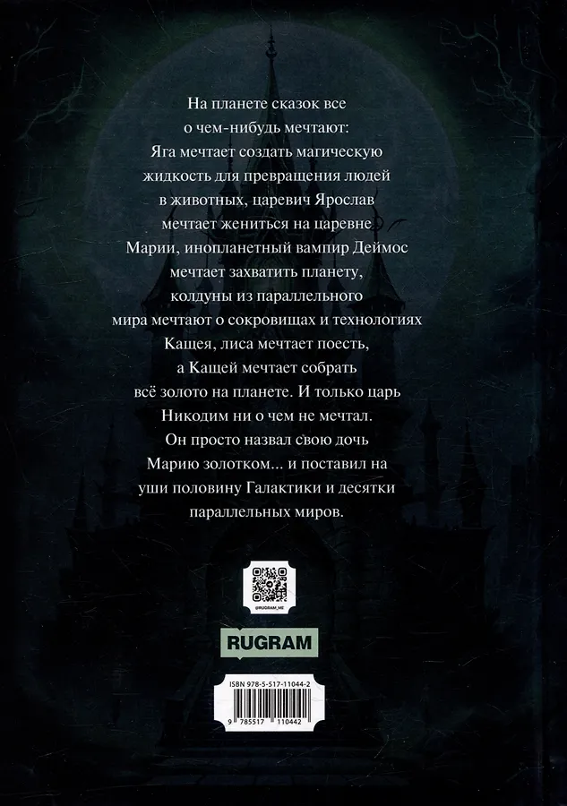 На планете сказок все о чем-нибудь мечтают: Яга мечтает создать магическую жидкость для превращения людей в животных, царевич Ярослав мечтает жениться на царевне Марии, инопланетный вампир Деймос мечтает захватить планету, колдуны из параллельного мира мечтают о сокровищах и технологиях Кащея, лиса мечтает поесть, а Кащей мечтает собрать всё золото на планете. И только царь Никодим ни о чем не мечтал. Он просто назвал свою дочь Марию золотком... и поставил на уши половину Галактики и десятки параллельных миров.