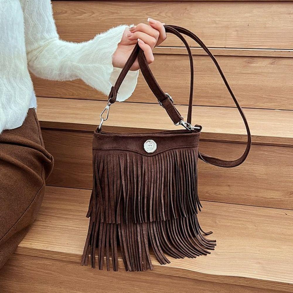 Квадратная сумка в стиле бохо с бахромой, сумка через плечо из искусственной кожи с кисточками, сумка-мессенджер чёрный