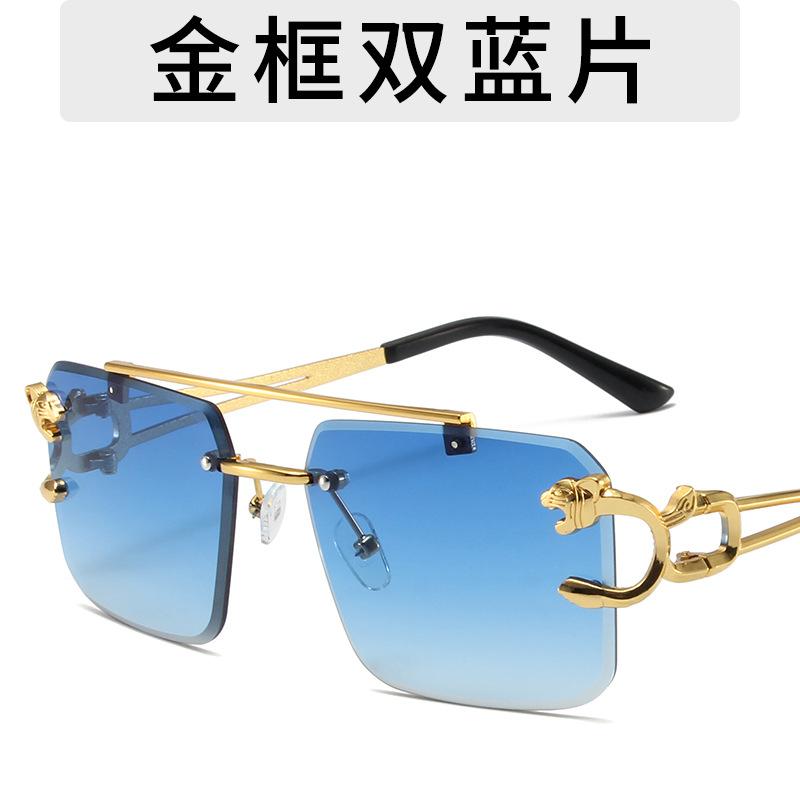 Квадратные безрамные солнцезащитные очки в стиле ретро, новые модные персонализированные металлические солнцезащитные очки с двойным лучом в форме головы леопарда, солнцезащитные очки для водителя золотой/синий