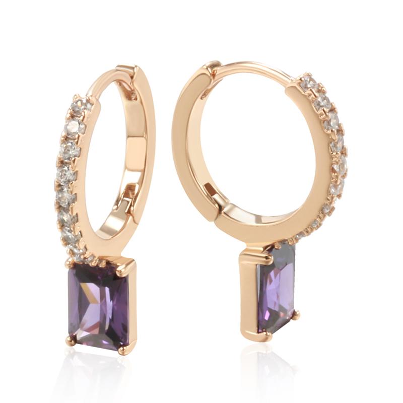 Квадратные фиолетовые серьги-кольца с цирконом, женские персональные ювелирные изделия, модные подарки фиолетовый