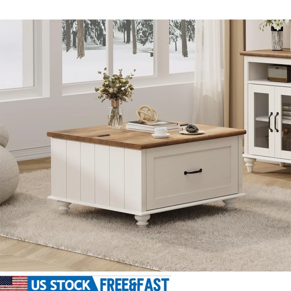 Квадратный деревянный журнальный столик с подъемной столешницей в фермерском доме со скрытым ящиком для хранения Прочная внутренняя мебель Организация гостиной