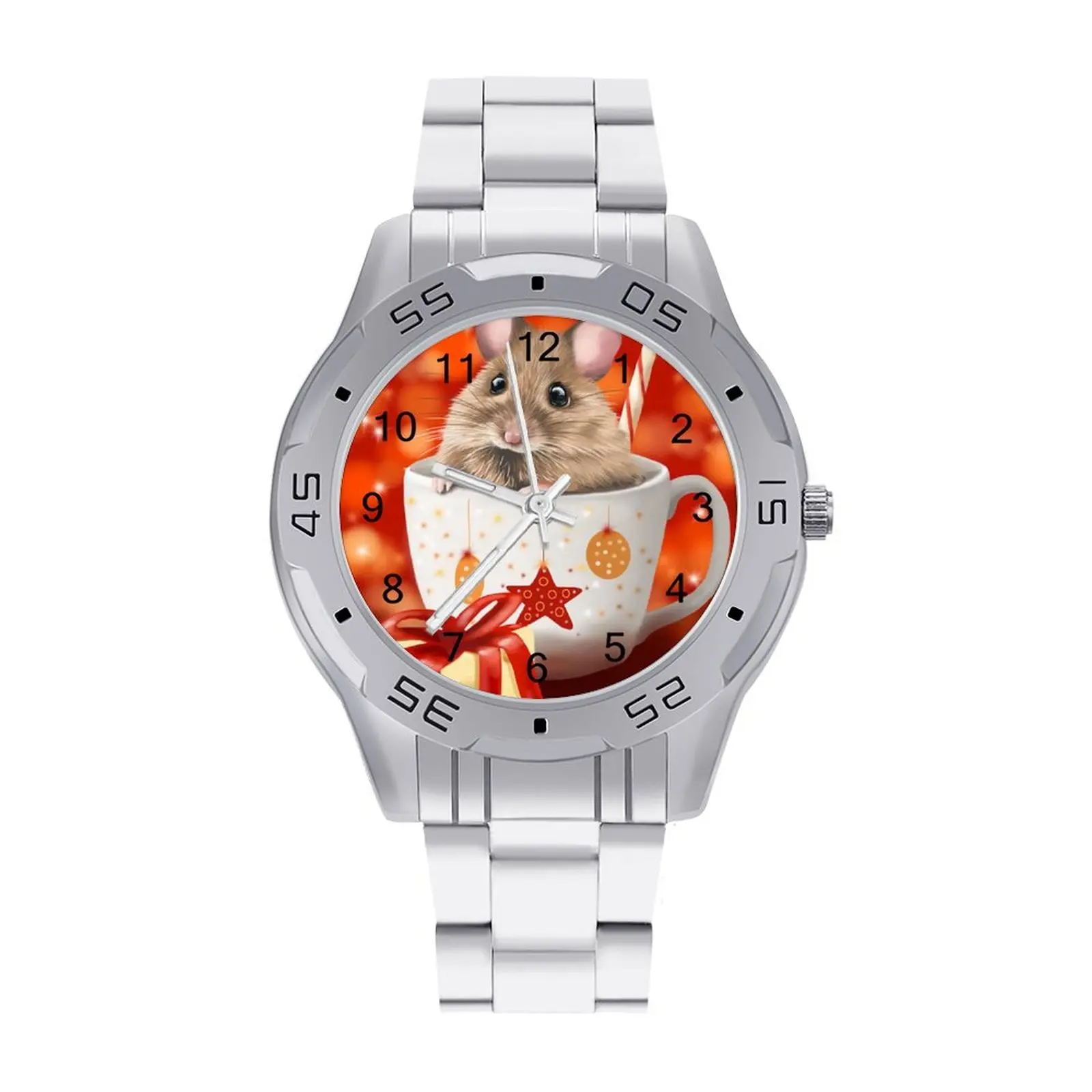 Кварцевые часы с изображением мыши, наручные часы, стальные часы для подростков