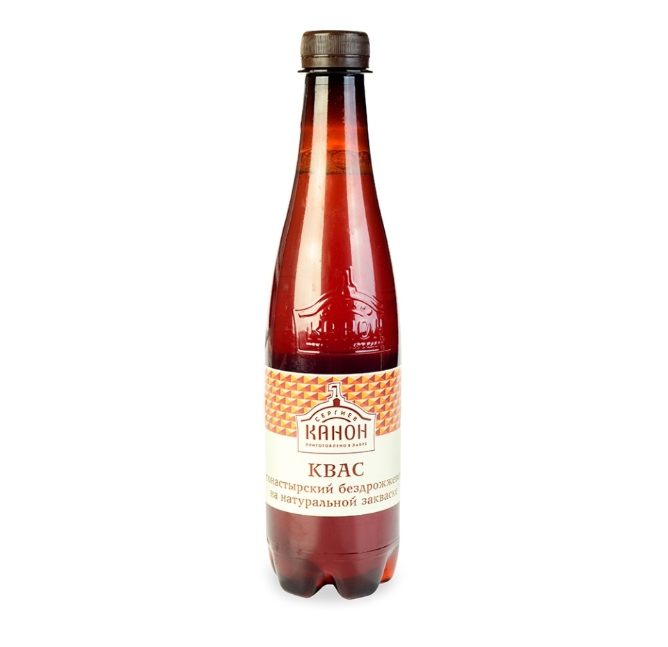 Квас Сергиев Канон Монастырский фильтрованный непастеризованный, 0.45л пластиковая бутылка Россия