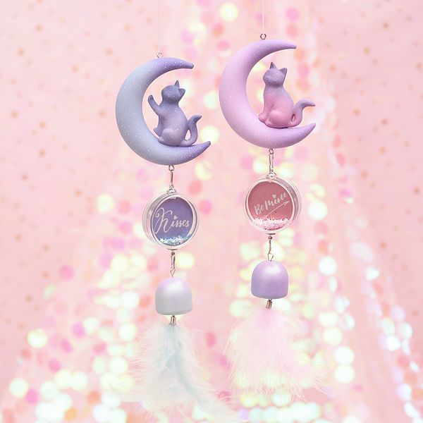 creative lovely moon romantic starry sky cat wind bell dream net hanging ornaments girl heart girl room decoration gift