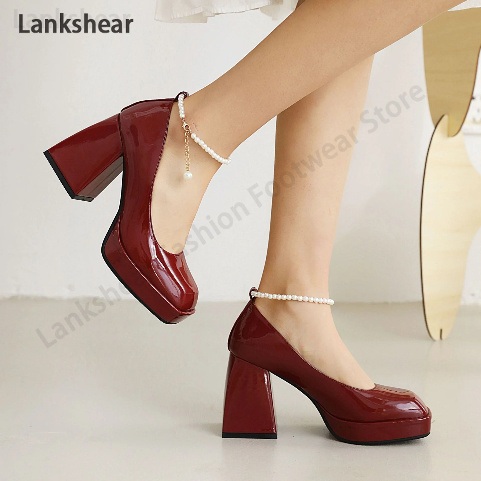 Mary Jane Shoes Women's Square Head High Heel Pumps Shoes Fairy Style Small Leather Shoes Thick Heel Buckle Pumps Woman Shoes