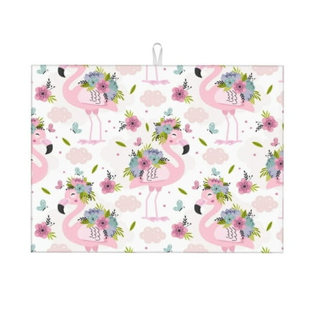 Ocsxa Flamingo And Flowers Dish Drying Mat for Kitchen Counter Coffee Bar Coffee Station Accessories Absorbent Coffee Mat Kitchen Drying Mat Easy Clean 18x24 Inch