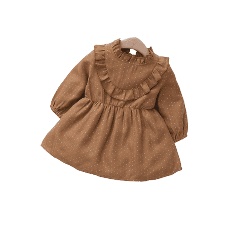 Mikrdoo Baby Girls Dress Wave Point 18 Months Girls Lotus Leaf Collar 24 Months Girls One Piece Winter Dress Brown