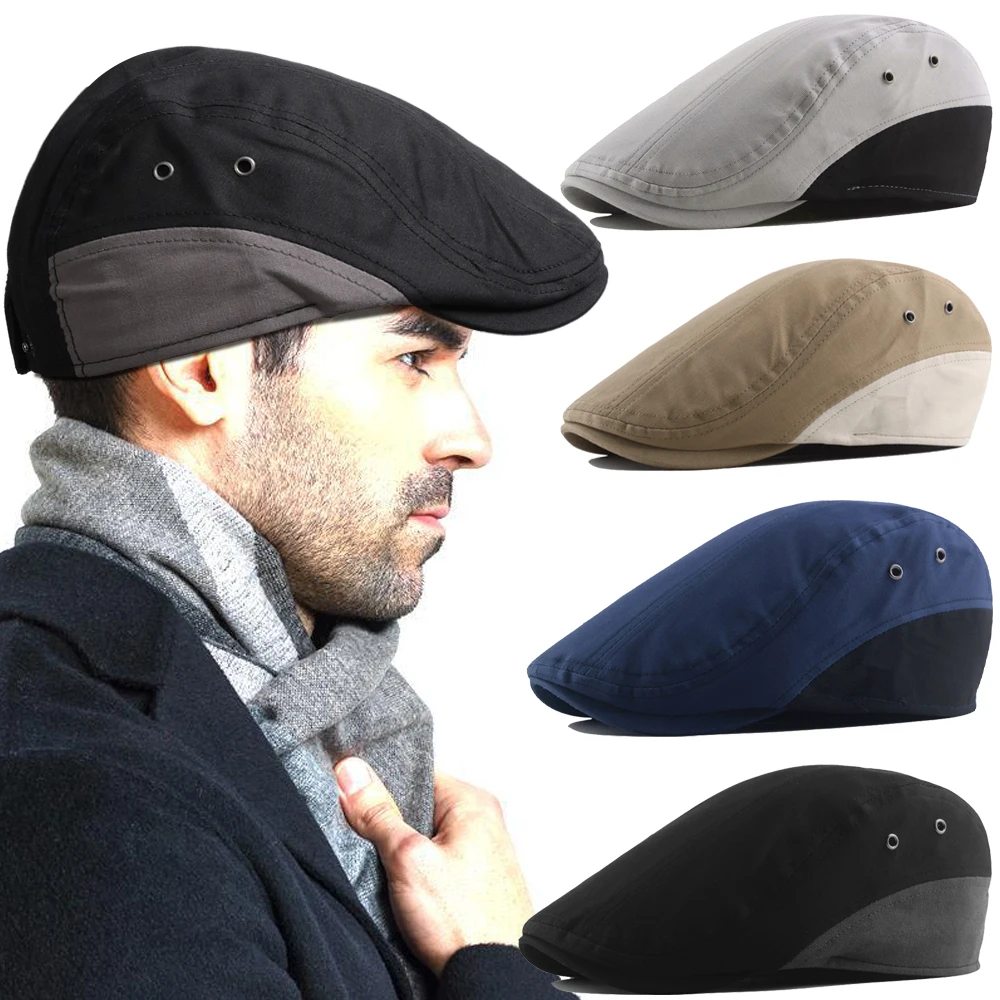 Кепка-берет в стиле ретро для мужчин и женщин, шляпа в британском стиле, с пэчворком, защита от солнца, плоская, регулируемая, однотонная, весна-осень