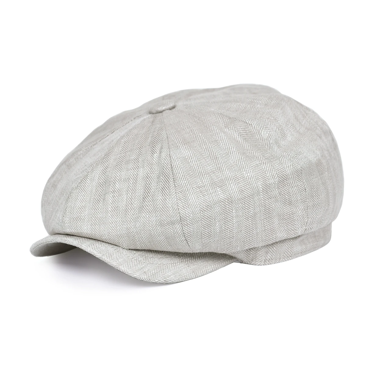 BOTVELA Big Size Newsboy Cap Men Women Light Grey Linen Herringbone Bakerboy Caps Lightweight Breathable Flat Hat Beret Hats