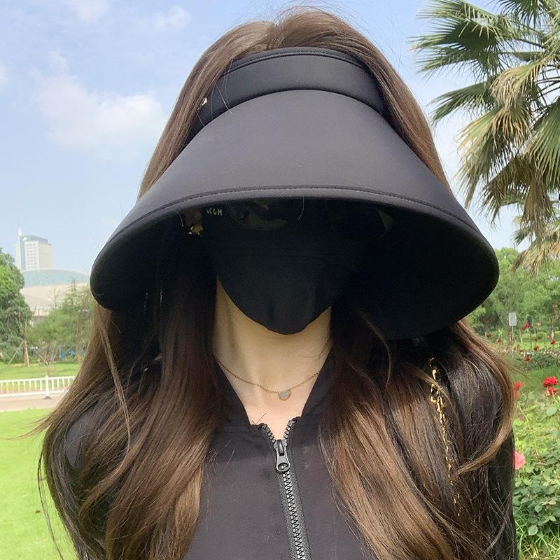 Кепка-панама от солнца на все лицо, летняя кепка с широкими полями и открытым верхом для велоспорта, солнцезащитная кепка из ледяного шелка с защитой от УФ-лучей no mask, one size fits all
