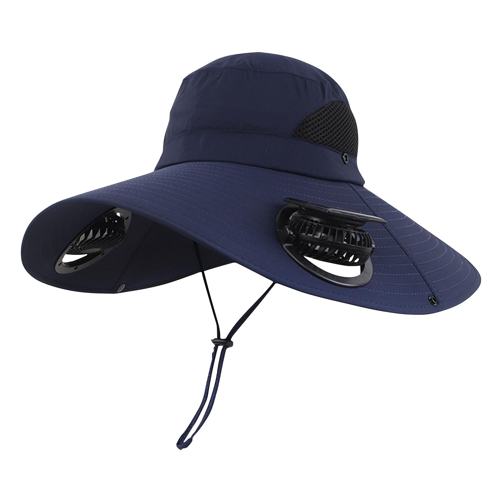 Кепка с вентилятором на солнечной батарее, Летняя шляпа, Рыбацкая шляпа, Защита от солнца, Затенение, Кондиционирование, Рыбак, Альпинизм, Защита от УФ-лучей One Size тёмно-синий