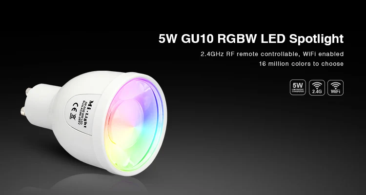 mi light 5W GU10 RGBW LED Light Blub AC86-265V FUT018 ModelControl Distance: 30m 450-490LM 2700-6500K