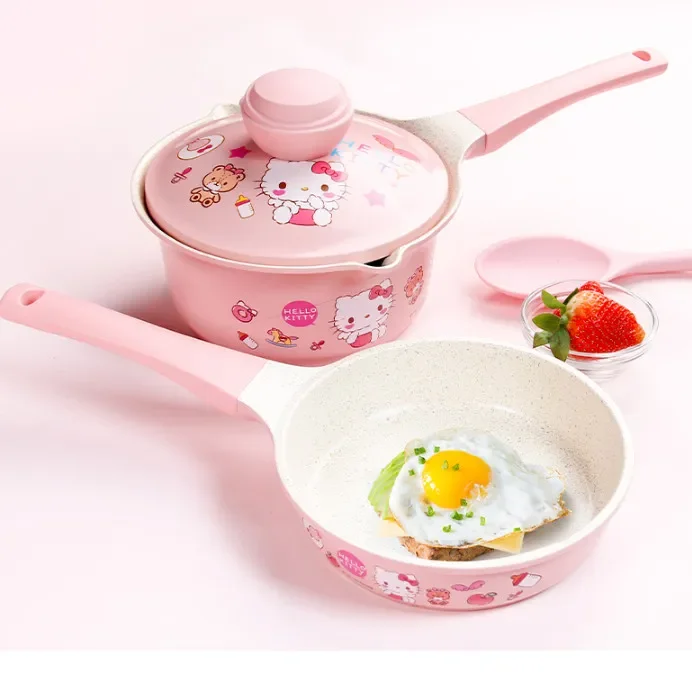 Керамическая Детская сковорода Kitty с антипригарным покрытием, подходит для приготовления блинчиков и стейков, портативная посуда для приго...