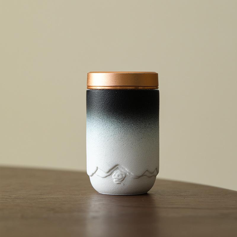 Керамическая банка для чая «Тысяча миль реки и гор» Маленькая портативная мини-герметичная банка Маленькая банка Крышка из жести Банка для хранения 1pc чёрный