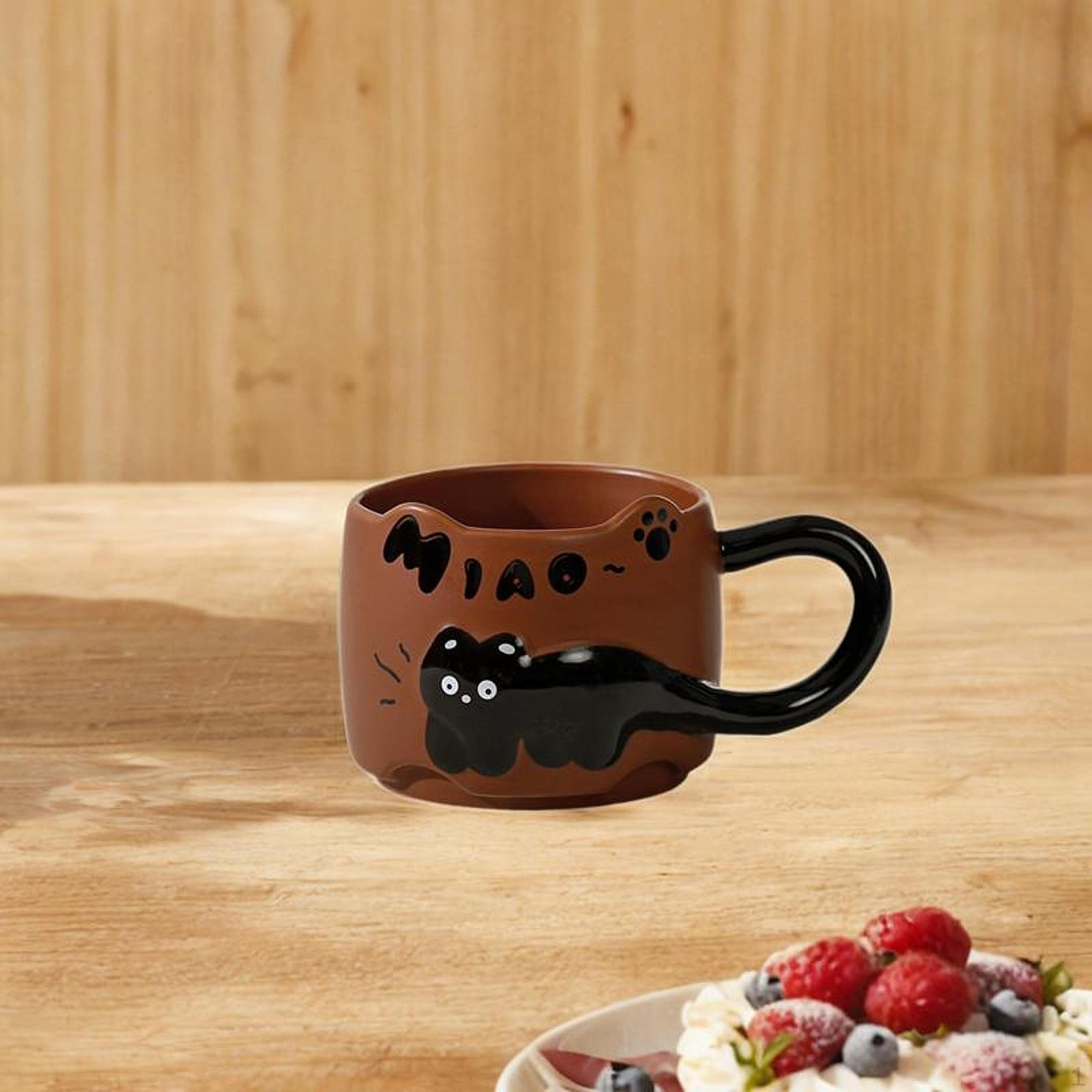 Керамическая кофейная кружка, контейнер для напитков, фарфоровая чашка с принтом кота для семьи коричневый