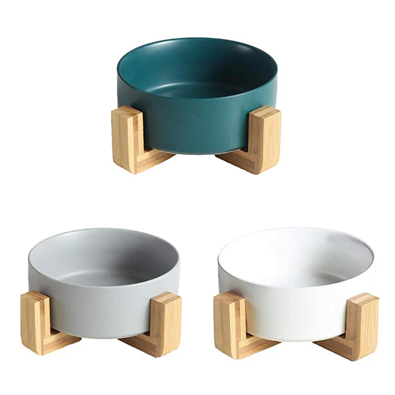 Керамическая круглая миска для собак и кошек, прочная миска для еды с подъемом воды, миска для еды для домашних животных, с деревянной подставкой, миска с подставкой