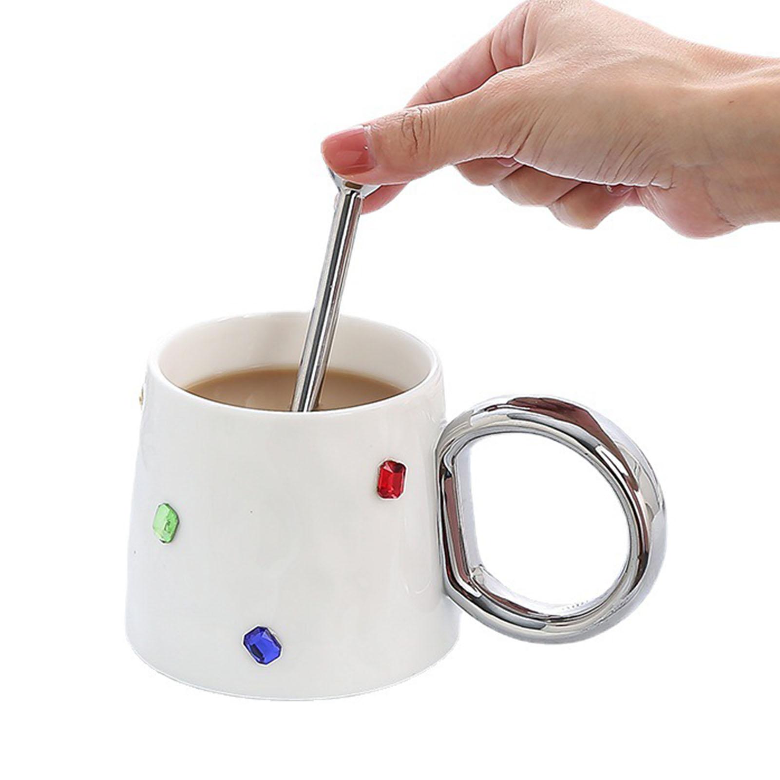 Керамическая кружка для кофе, цветная, с каменной отделкой, простая, стильная, чашка для чая с круглой ручкой для дома, путешествий белый