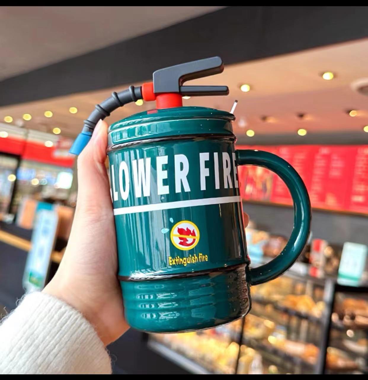 Керамическая кружка-огнетушитель с крышкой и ложкой — забавная, креативная, модная офисная кружка 401-500ml зелёный