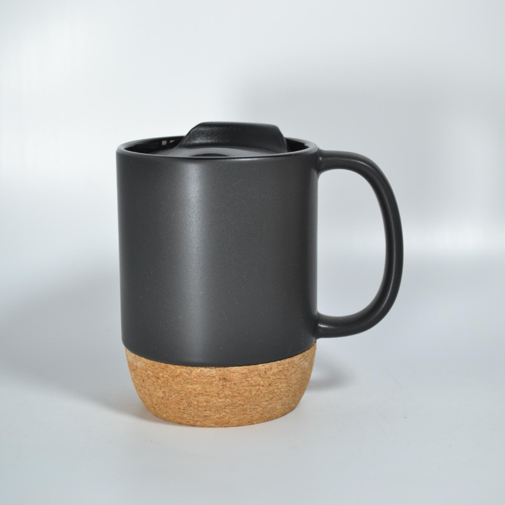 Керамическая кружка с пробковым дном, матовая, с пластиковой крышкой, популярная, простая, однотонная, кружка фэн-шуй 301-400ml чёрный