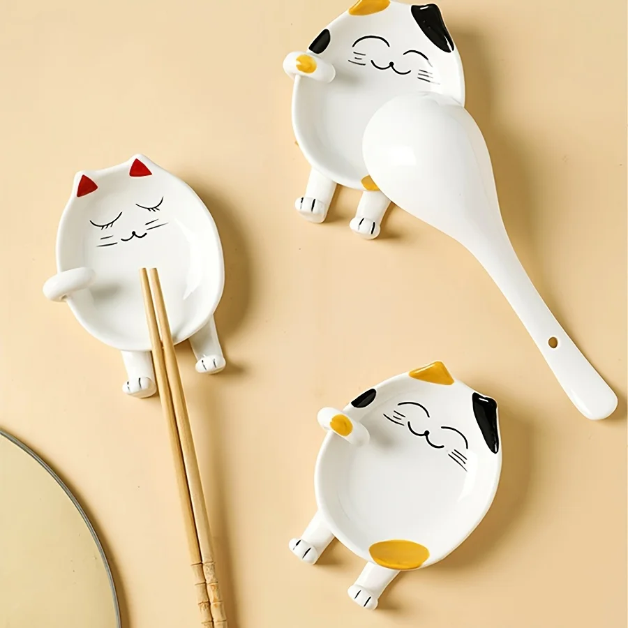 Керамическая крышка для кастрюль с милым котом, рама для лопаток, Встроенный держатель для палочек, рама для ложки для супа