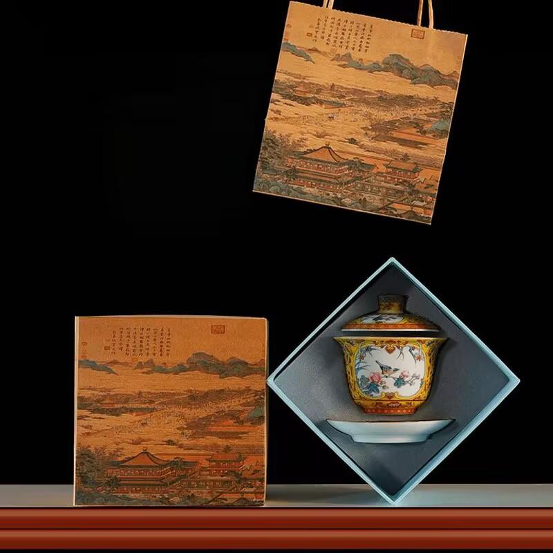 Керамическая крышка-пиала Сине-белая эмаль Цвет Чайная пиала Легкая роскошь Чайная посуда Набор для чая Кунг-фу Чайная чашка Подарочная коробка Белый фарфор Чайная пиала