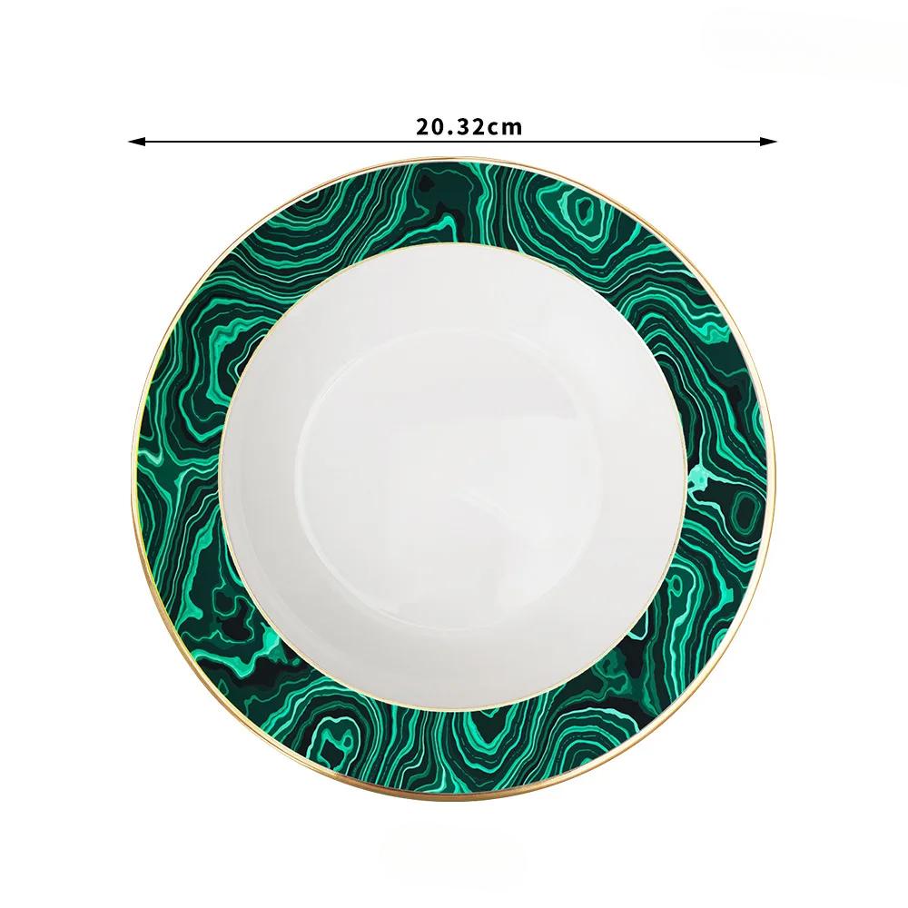 Керамическая тарелка из зеленого костяного фарфора, западная тарелка, званый ужин, золото, золото, десерт, паста, для дома