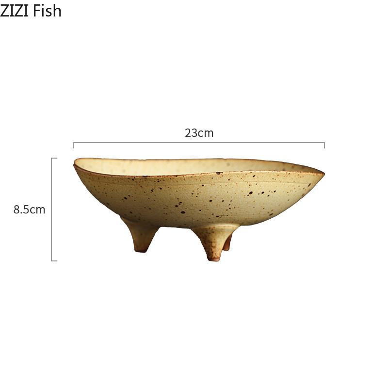 Керамическая тарелка на трех ножках, креативная тарелка для конфет и фруктов в стиле ретро для ресторана, декоративная тарелка для еды, японская посуда