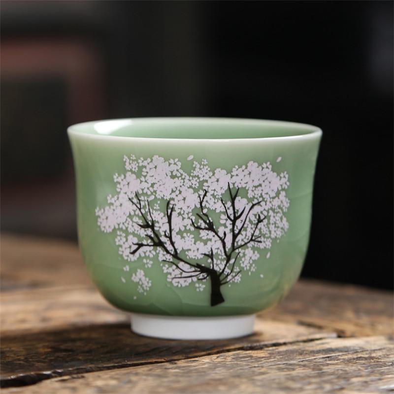 Керамическая термообесцвеченная чашка для чая с цветением вишни, ручная роспись, кружка для воды, меняющая цвет дерева, офисная чайная чашка, посуда для напитков кунг-фу