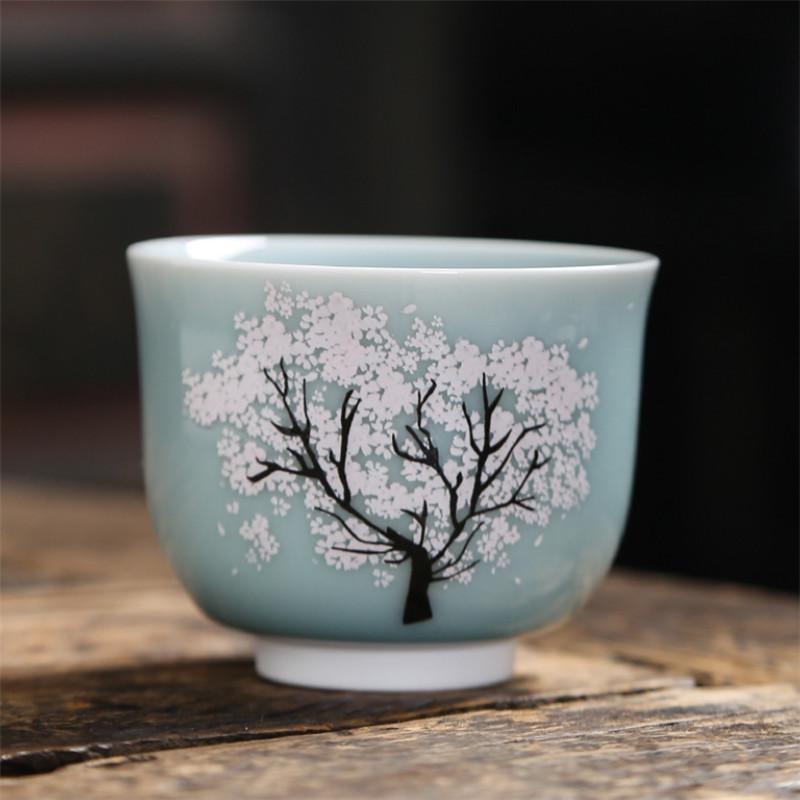 Керамическая термообесцвеченная чашка для чая с цветением вишни, ручная роспись, кружка для воды, меняющая цвет дерева, офисная чайная чашка, посуда для напитков кунг-фу