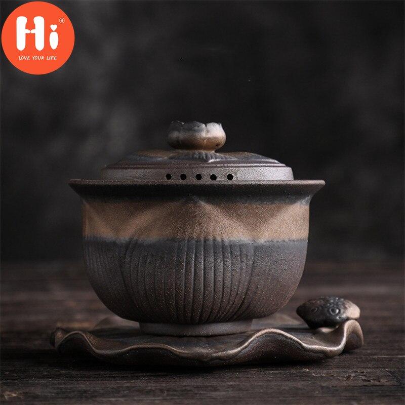 Керамическая чайная чаша ручной работы с крышкой Офисный чайник Цзиндэчжэнь Чайная чашка Керамика Чайный сервиз Гайвань Посуда для напитков 170 мл
