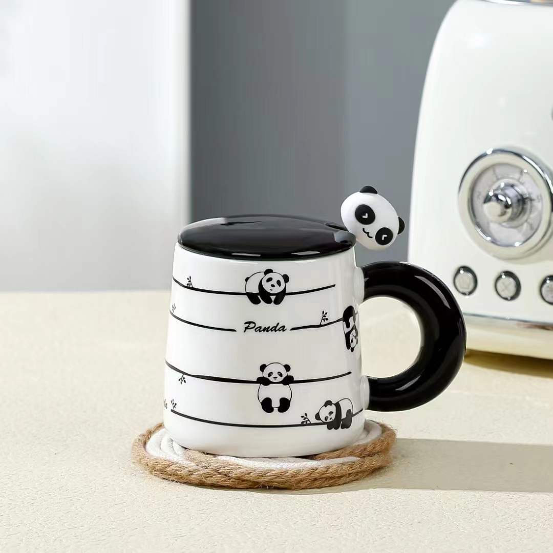 Керамическая чашка с изображением панды из мультфильма «Национальный тренд» и ложкой, креативная большая кружка в виде руки, держащей кружку, очень милая пара, пьющая воду для завтрака, кофейная чашка 301-400ml
