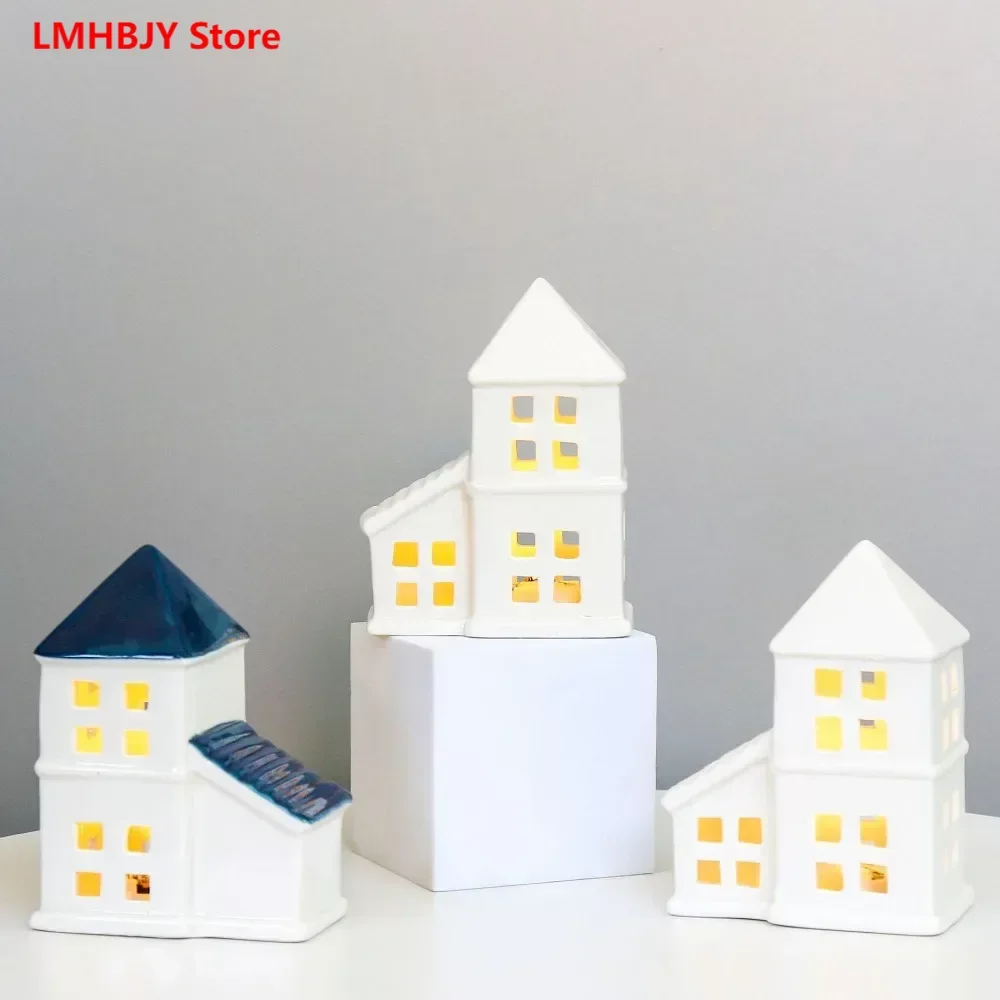 Керамические домики, рождественские поделки, предметы интерьера, Рождественская елка, открытые ночные светильники