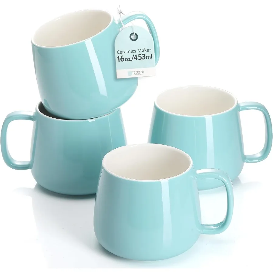 Керамические кофейные кружки на 16 унций, набор из 4 штабелируемых чашек для латте, микроволновая печь, можно мыть в посудомоечной машине, идеально подходит для кофе, капучино, горячего шокола