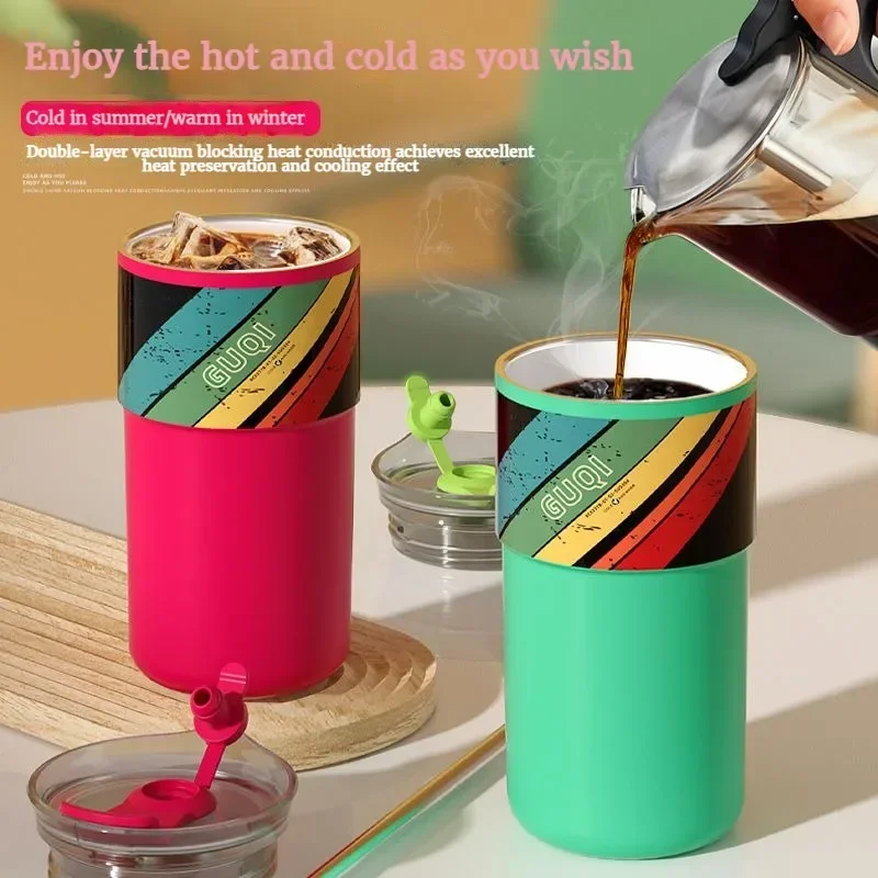 Керамический кофейный термос, чашка 304из нержавеющей стали, высокое значение, портативная солома, большая емкость, чашка для воды Питьевая утварь, бесплатная доставка