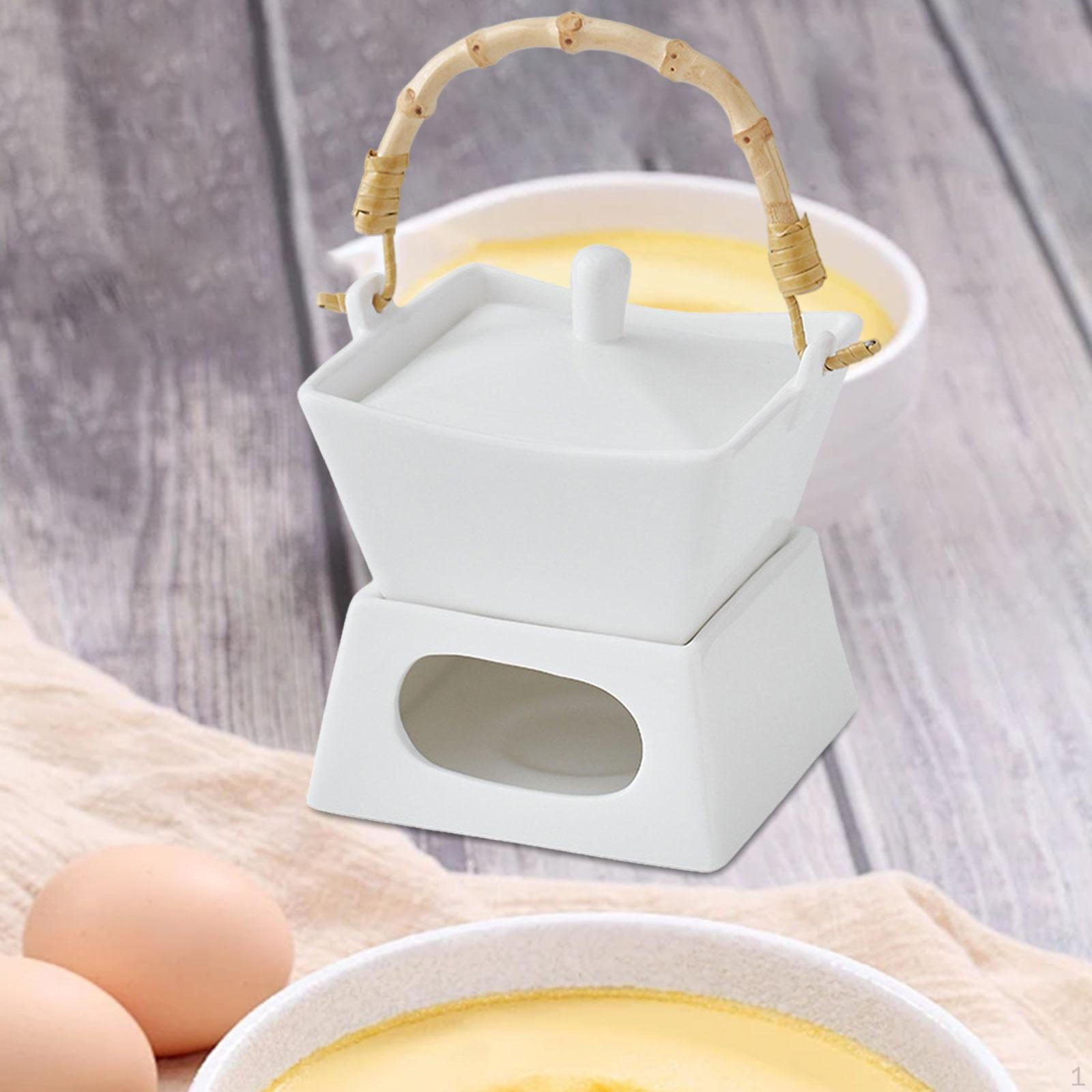 Керамический набор для подогрева масла, фарфоровый горшок для плавления шоколада и крышка для фондю White Edge
